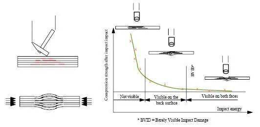 相比較于飛行過程中高能量的瞬間沖擊,日常使用、維修過程中的低能量沖擊更令工程師感到頭疼,事實上飛機復合材料部件最多的損傷恰恰就是在維護過程中各種碰撞、拆卸而產(chǎn)生的,比如維修人員身上掉落的扳手砸到結構表面造成的沖擊損傷,這不經(jīng)意的一瞬間足以造成內(nèi)部的缺陷。而與高能量沖擊不同的是,這種缺陷在外表面可能根本無跡可尋。而當你發(fā)現(xiàn)表面有勉強目視損傷時,可能結構內(nèi)部已經(jīng)受損嚴重,強度也驟降一半之多。